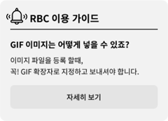 RBC에서는 따로 GIF 이미지를 제작하지 않아도 바로 사용하실 수 있도록 메시지에 포인트를 줄 수 있는 GIF 로고를 제공하고 있습니다.